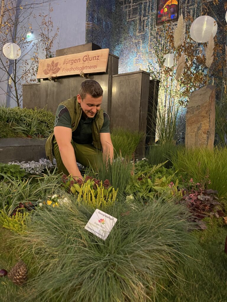 Er überzeugt durch kreative Gestaltung und nachhaltige Pflanzenverwendung. Als Quereinsteiger bringt er seit dem berufsbegleitenden Masterstudium seit 2021 einen branchenfremden Blick in den Betrieb. Insbesondere in Sachen nachhaltige Staudenbepflanzungen für Gräber eignet er sich laufend weiter Wissen an, um Trauernden hier ein modernes Angebot machen zu können.